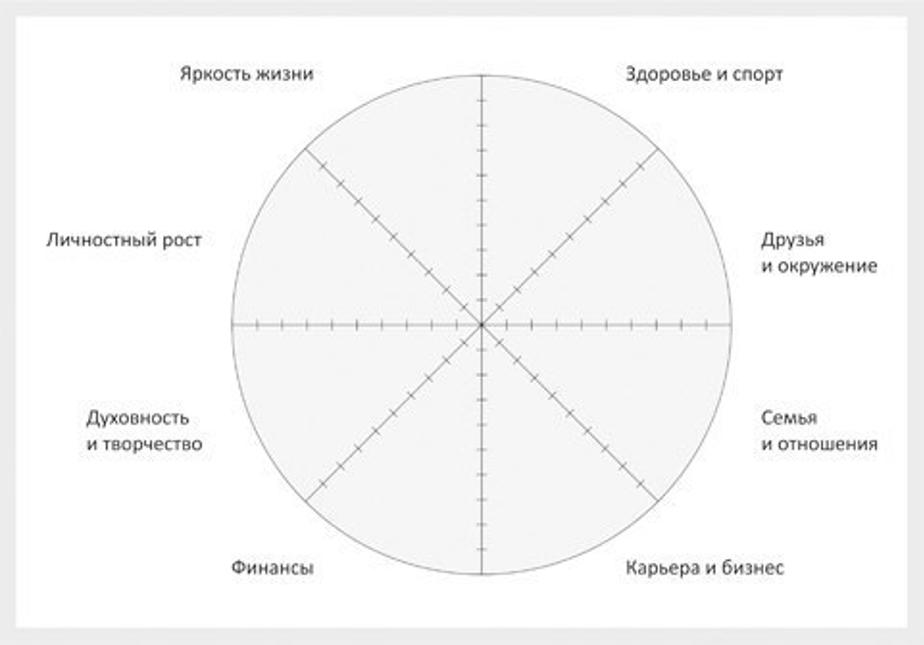 Реалистично оцените каждую сферу жизни и закрасьте.