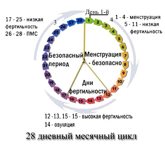 . У большинства женщин менструальный цикл длится около 28 дней. Первый день менструации считается началом цикла, первым его днём. 1. К 14 – му дню цикла яйцеклетка попадает в маточную трубу.