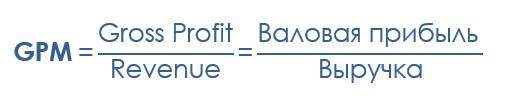 Gross Profit Margin (GPM) – маржа валовой прибыли – коэффициент, показывающий, сколько процентов выручки остается «в кармане» компании после прямых затрат на создание и реализацию продукта (переменные издержки).