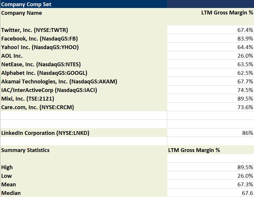 Давайте сравним маржу валовой прибыли LinkedIn Corp с конкурентами (данные за 2015 г.):
