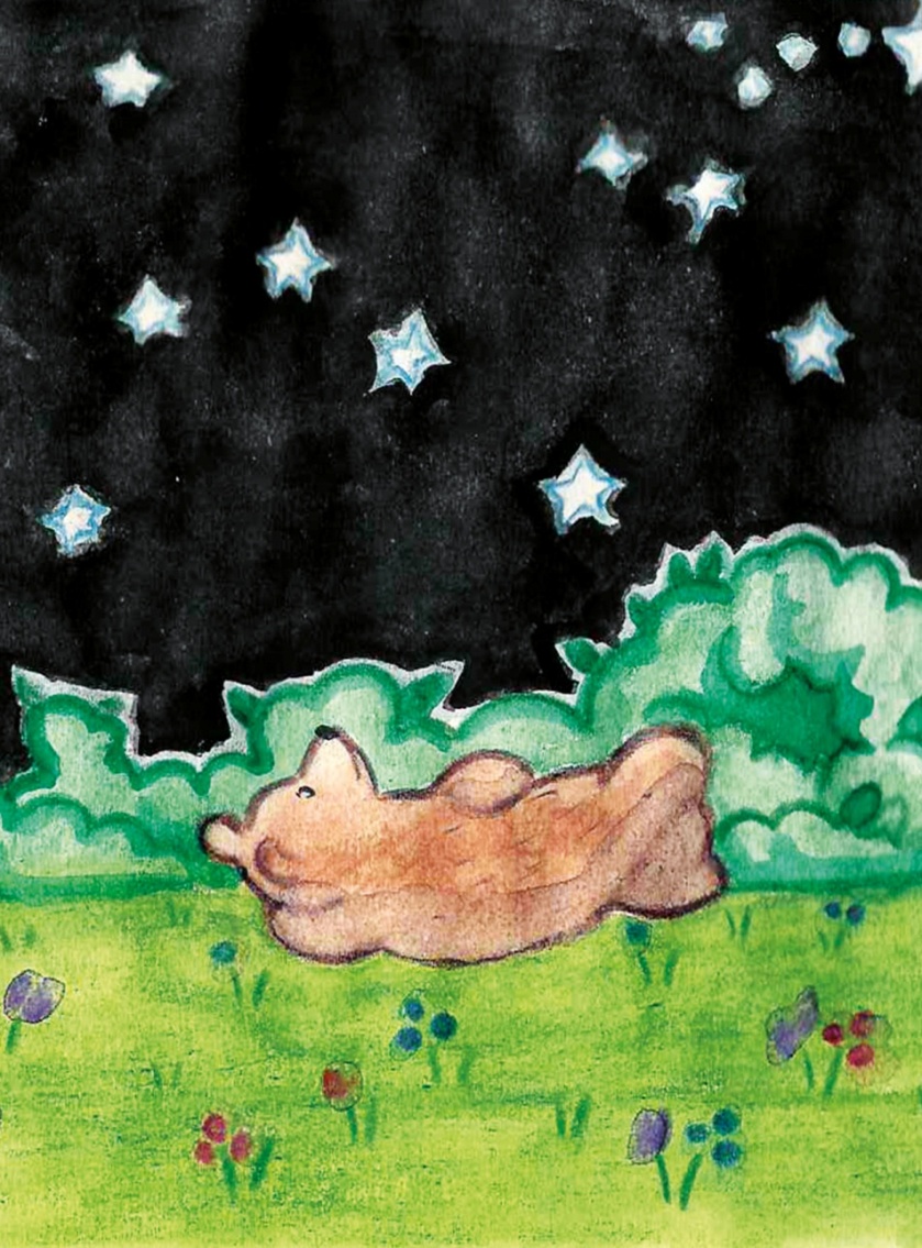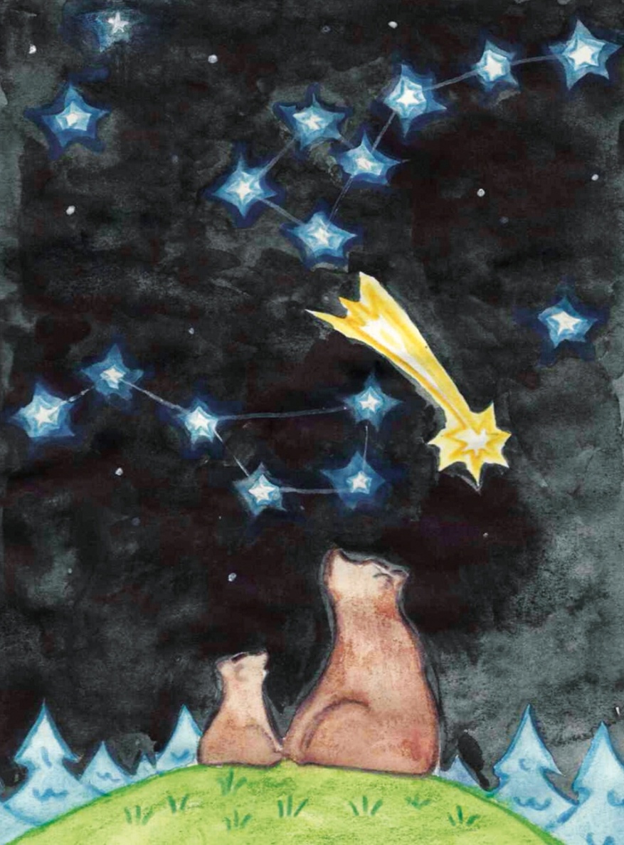 “You need to be more careful” the grandfather bear answered, “People are very dangerous beasts, they want our fur and meat. I know about those bears in the sky, come to my hill tonight when the stars appear”
