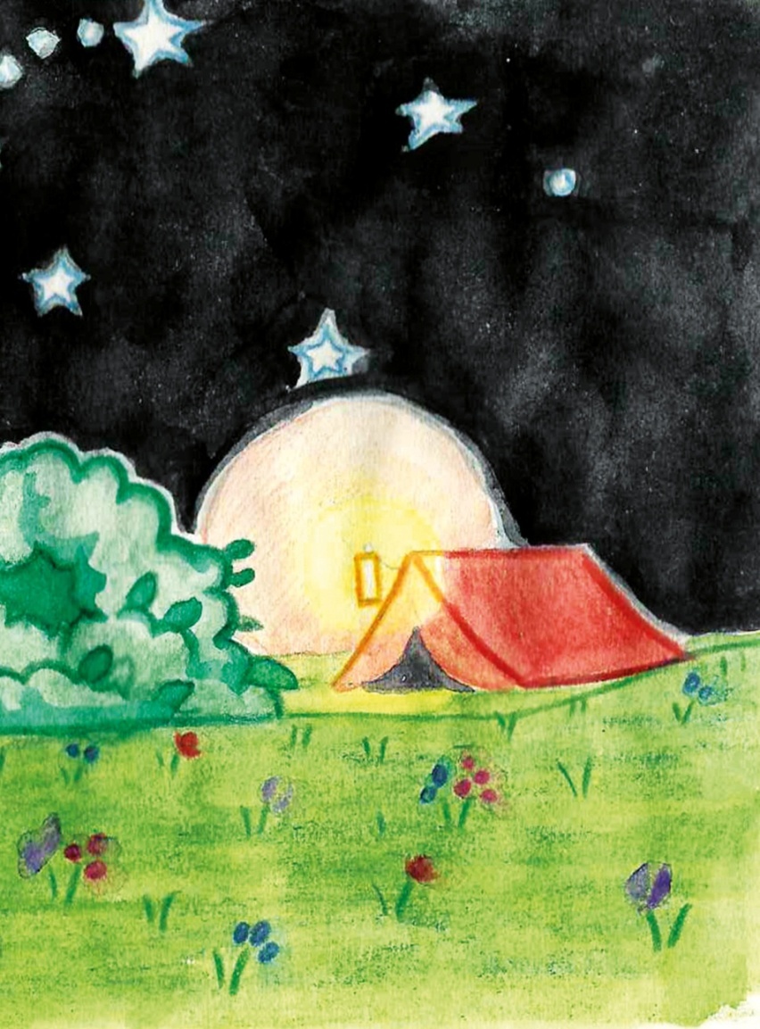 The bear turned his head and noticed a tent and talking people not far from him. He was really frightened, as men were known to easily shoot a bear and then he would not be able to eat anymore raspberries, but, it appeared these people did not have any guns. Although, you could never trust them, you would never know what is hidden in their tent. Hesitating a little, Bron decided to leave very quietly and imperceptibly crept away from a lawn. The whole next day Bron spent being thoughtful about the night before. It must be a joke, bears in the sky? He had never seen them!