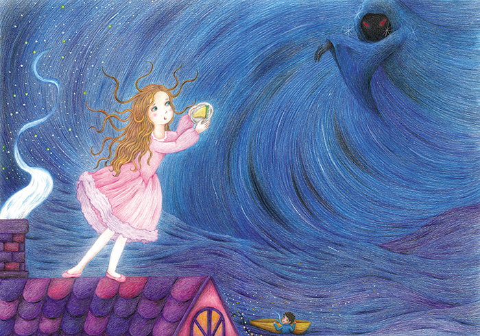 «Динь-динь-динь» вдруг запели маленькие колокольчики. Ска обернулся птицей, а хижина растворилась. Лучик остался один на подвесном мосту среди ледяного океана. Это была первая ночь, которую он собирался провести вне своего дома.