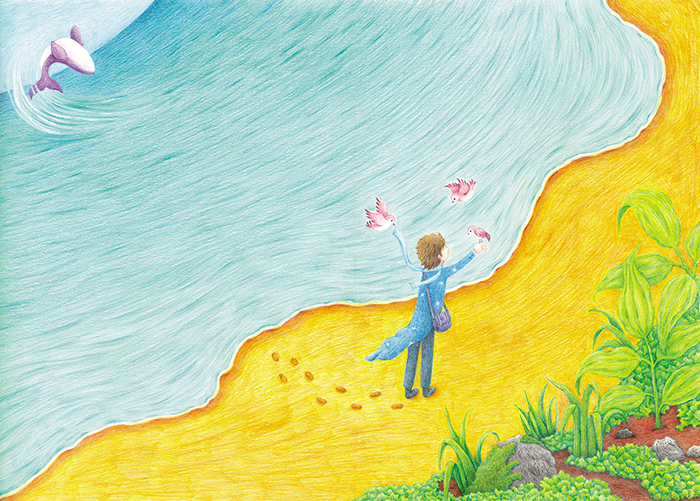 3. Лучик верен своему сердцу, которое полно любви к хранительнице океана – Капельке. В глазах её столько нежности и глубины, в них миллионы оттенков изумрудного и аквамаринового. Её волосы цвета чёрного янтаря, а кожа белее океанской пены. Она всегда приходит к нему в гости, но никогда не остаётся.