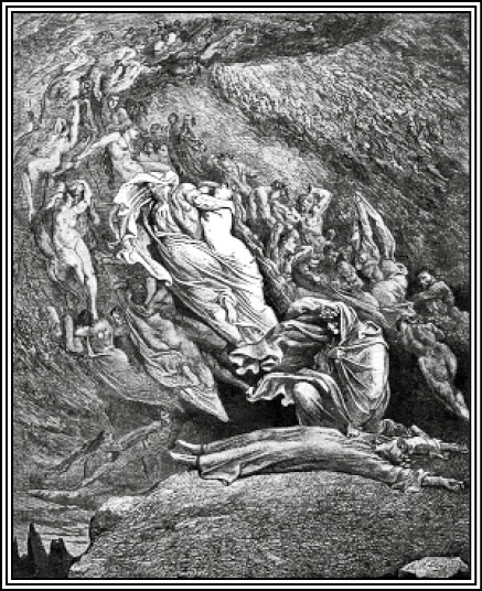 139 Так дух один сказал, меж тем так грустно Рыдал другой, что в скорби наконец Я обомлел от повести изустной132 И пал без чувств, как падает мертвецПеснь VI
