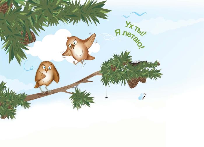 – Давай я тебе помогу, – предложила Ли. – Попробуй подпрыгнуть на ветке и расправить крылья. А потом взмахни и оттолкнись посильнее.