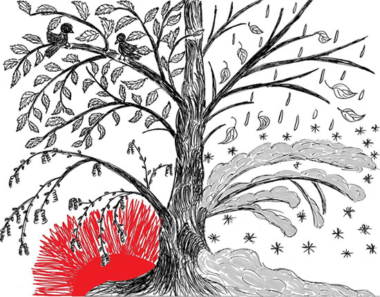 • Нарисуй своё любимое время года и себя в нём. Например, так:
