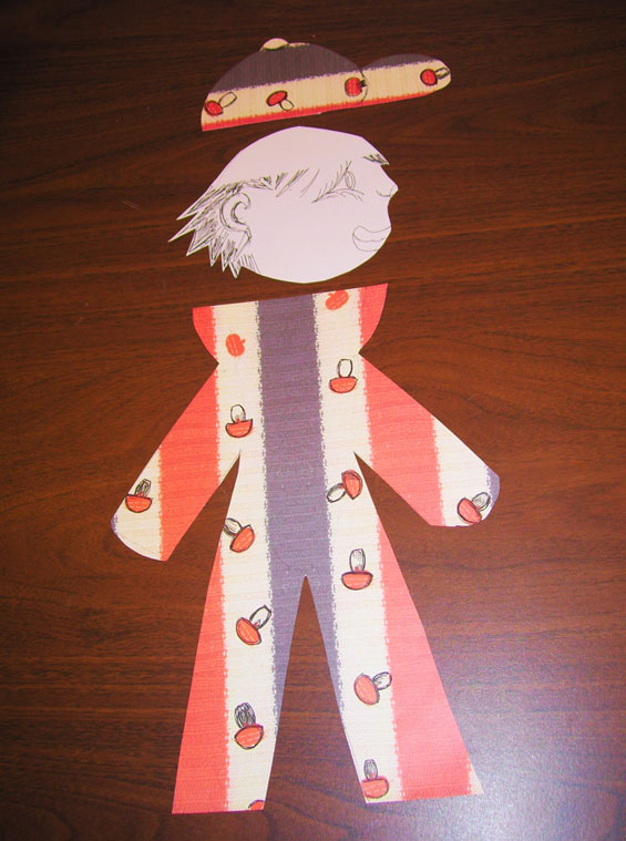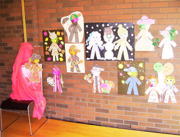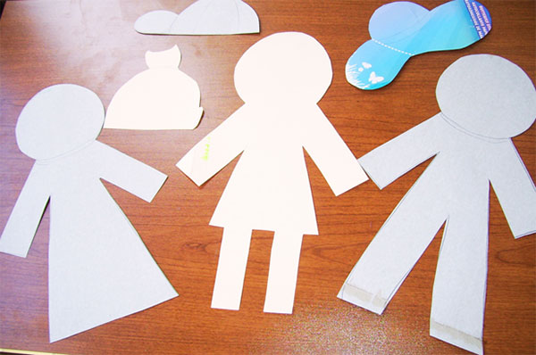 Сначала дети под руководством бабушки сделали картонные трафареты разных фигурок, а также головные уборы к ним.