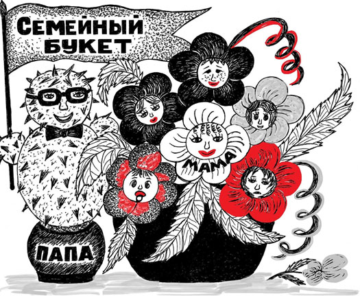 • Нарисуй свою семью необычно. Или сделай аппликацию из цветной бумаги. Например, изобрази свою семью в виде цветов. Вот так: