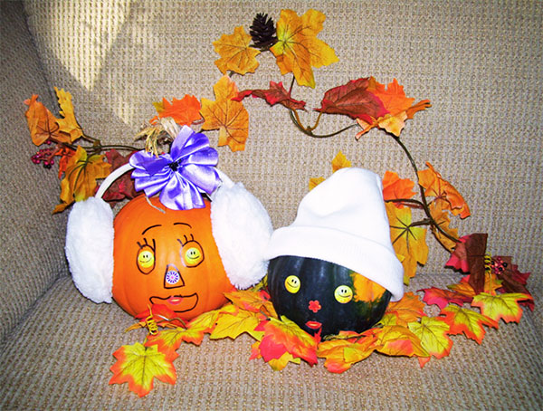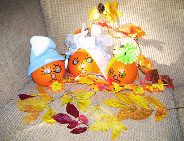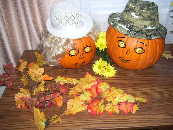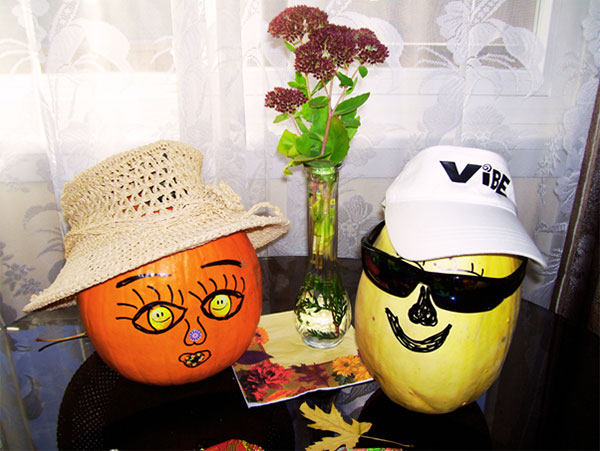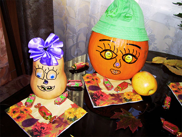 Когда близнецы принялись за работу, бабушка вдруг предложила: «А что если не только рисовать на тыквах, кабачках и других плодах забавные рожицы, а и «приодеть» плодовые головы?! Давайте нарядим их».