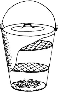 Внутри на расстоянии 3–4 см от дна разместить решетку. Решетки можно укрепить в несколько ярусов.