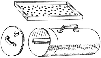 Печка. Для изготовления печек пригодны банки из-под эмали, консервов, чая и т. д. У печки днище – место, больше всего подверженное тепловым нагрузкам и поэтому прогорающее быстрее всего. Этот факт вынуждает при конструировании мини-коптильни уделить особое внимание дну. Опытным путем было установлено, что наиболее рациональным является бытовая коптильня, имеющая днище из нержавеющей стали (такая сталь не подвержена прогоранию).