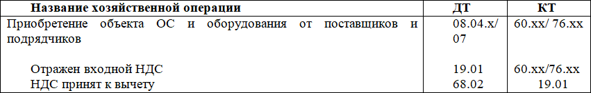 Дт 08.04.1 Кт 60.хх(76.хх) приобретение ОС