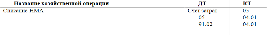 Дт 91.02 Кт 04 списана остаточная стоимость НМА