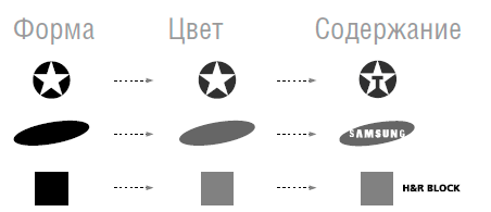 В первую очередь мозг распознает и запоминает форму. Зрительные образы могут запоминаться и узнаваться непосредственно, в то время как слова должны интерпретироваться. Для того чтобы идентифицировать ту или иную форму, не обязательно уметь читать, но чтобы читать – нужно уметь идентифицировать формы. Поскольку специфические, оригинальные формы легко запоминаются, создание таких форм – очень важная задача формирования индивидуальности.