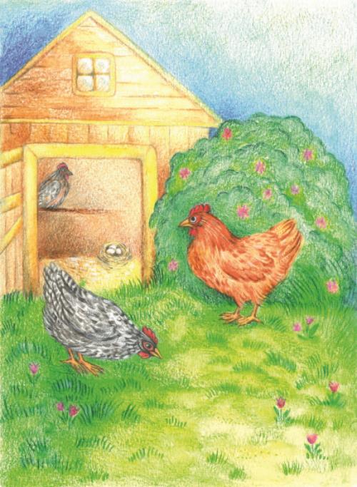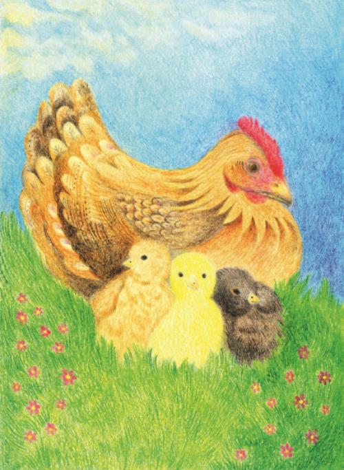 Они пушистые, пищат,Под крылом наседки спят.Прыгают, бегут куда-то,Клюют зёрнышки…