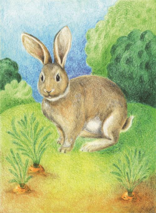 Длинноухий братец зайкиОчень нравится хозяйке!Его хвостик, будто нолик,Весь пушистый робкий…