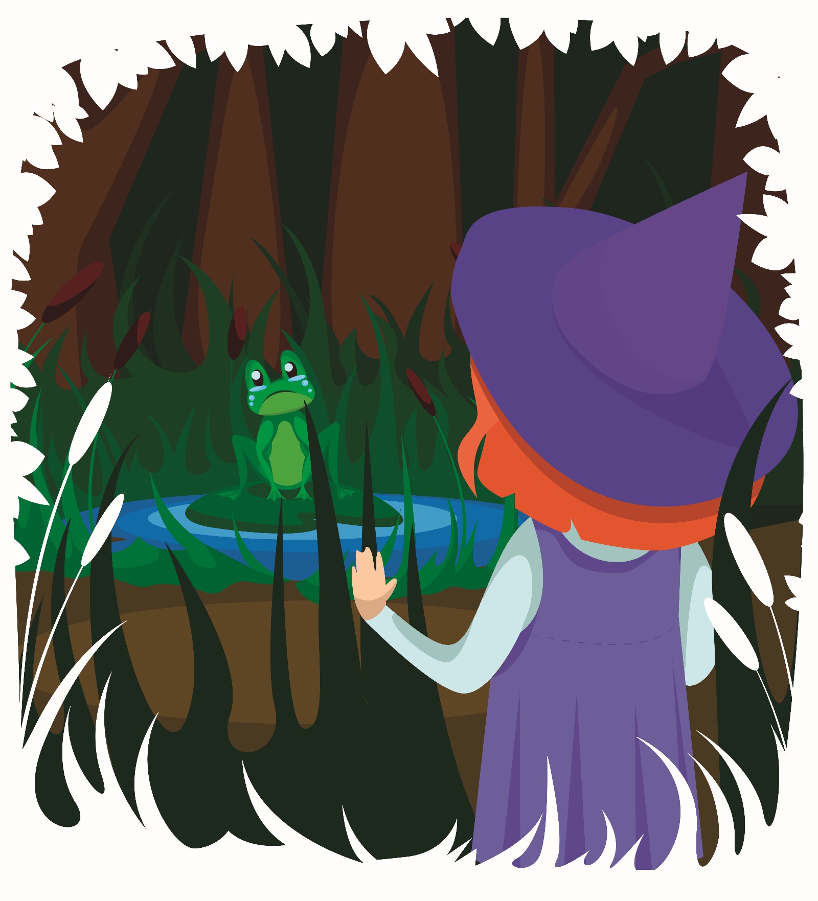 Лили шла медленно и смотрела по сторонам, как вдруг услышала жалобное кваканье за камышом. Сошла девочка с тропинки и пошла посмотреть, кто это так жалобно всхлипывает там, в зарослях.