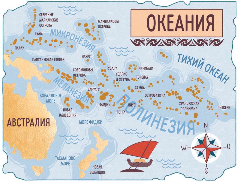 Друзья очнулись на огромной деревянной палубе. Перед ними лежала карта, на которой где-то посередине высветилась надпись: «Полинезия и Океания».