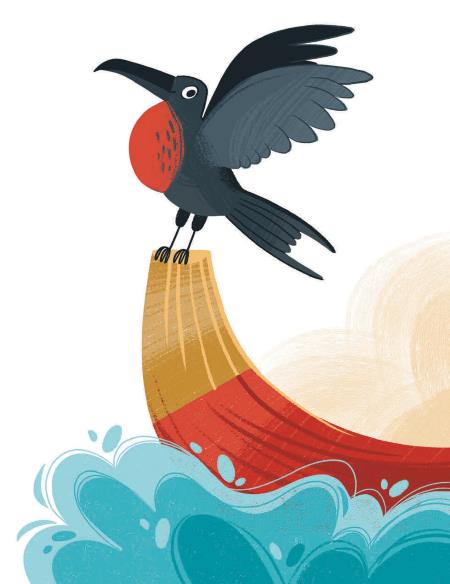 С утра Дениска и Гаврюша проснулись от криков. На борту сидела птица с огромными черными крыльями и красной грудью. Напо пояснил: