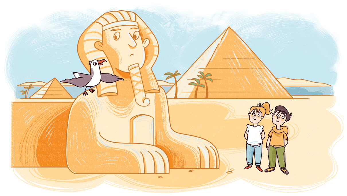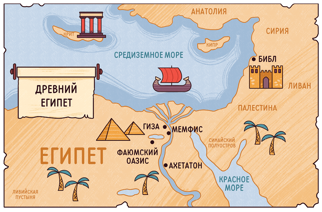 – Мы прибыли еще в один центр мировой цивилизации – Древний Египет. Перед нами Нил. Эта река до сих пор считается одной из самых длинных на нашей планете, ведь она тянется с юга на север почти на 6 700 км! Древние египтяне селились вдоль полноводного Нила, так как пустыни вокруг для жизни не годились.