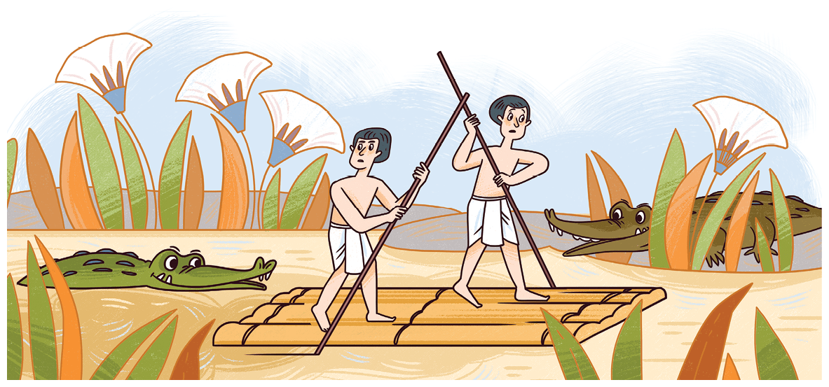 ПОМОГИ ДВУМ ДРЕВНИМ ЕГИПТЯНАМ ПРОПЛЫТЬ НА ЛОДКЕ ПО РЕКЕ НИЛ ТАК, ЧТОБЫ НЕ СТАТЬ ОБЕДОМ ДЛЯ КРОКОДИЛОВ.