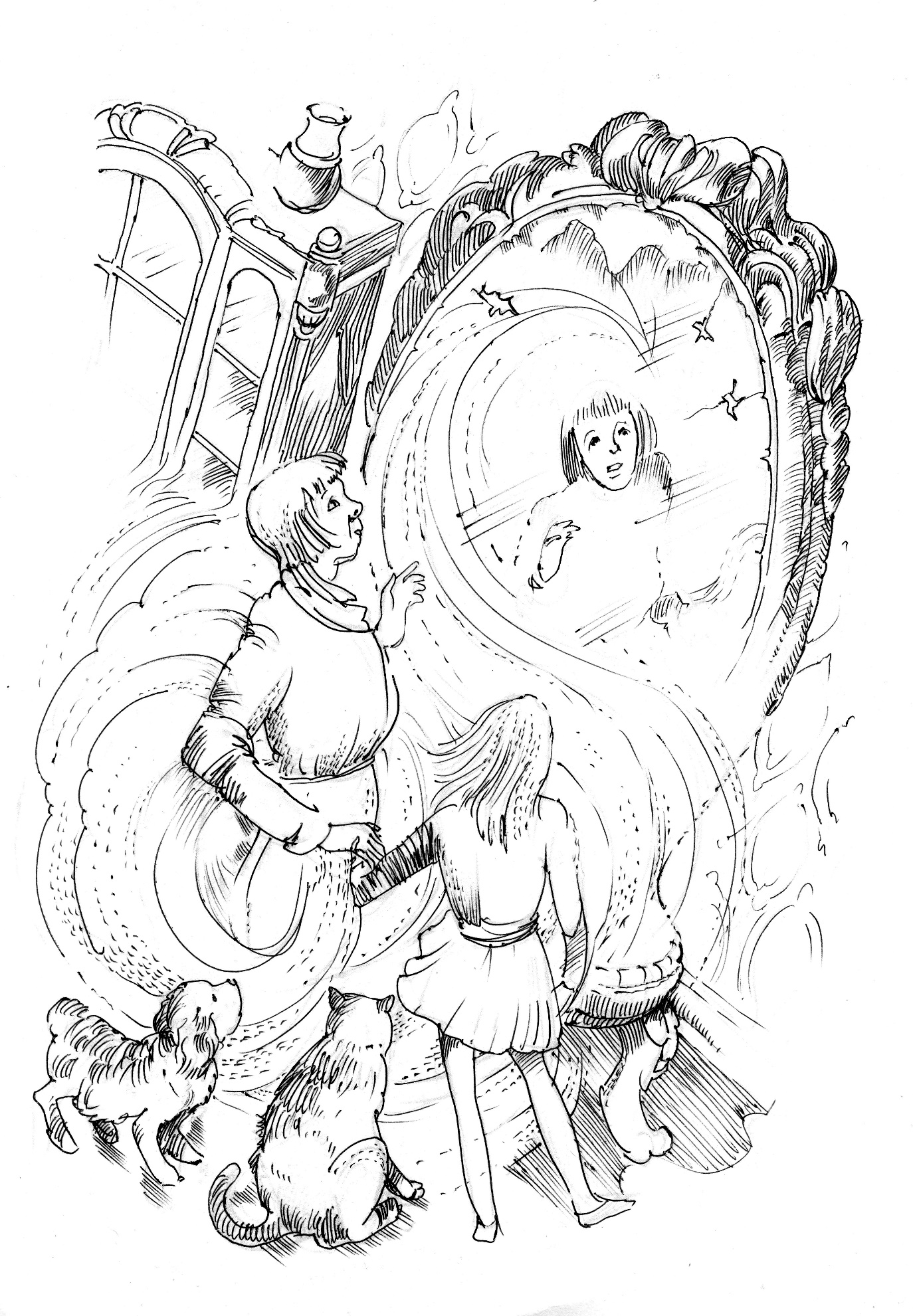 Бабушка обняла Лялю, прижала к себе, пытаясь утешить. И даже Тотошка подошёл ближе и потёрся о её ноги. Ляля наклонилась погладить доброго Тотошку – но тот, неожиданно вырвавшись, громко залаял… он громко лаял, глядя в зеркало, – а там происходили непонятные вещи!