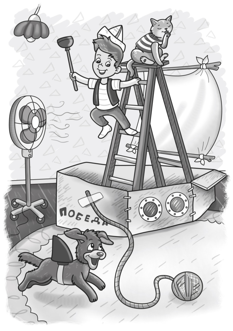 Я себе построил яхту,Чтоб ходить по всем морям.Сам несу ночную вахту.Побывал и там и сям.И нисколько не пугалсяУраганов и акул —Я совсем не волновался,Даже глазом не моргнул.Был я смел и был отчаян,Слушал, как ветра поют.Пил компот под крики чаек.Отдыхал в тиши кают.И всегда со мною рядомВаська – корабельный кот.Он в моём морском отрядеСлужбу верную несёт.