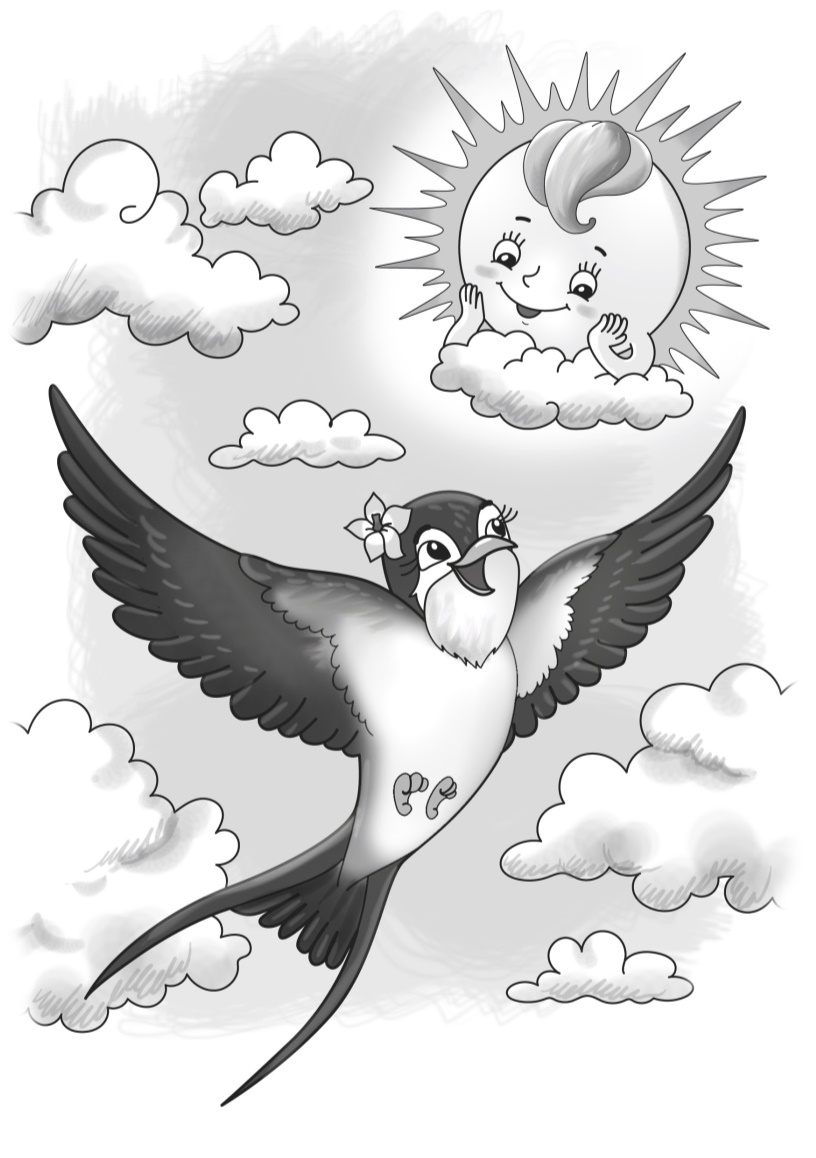 Прилетела ласточкаИз-за синя моря,И порхает ласточкаВ небе на просторе…Песня разливается,Как в реке водица…Солнце улыбаетсяЩебетунье птице.