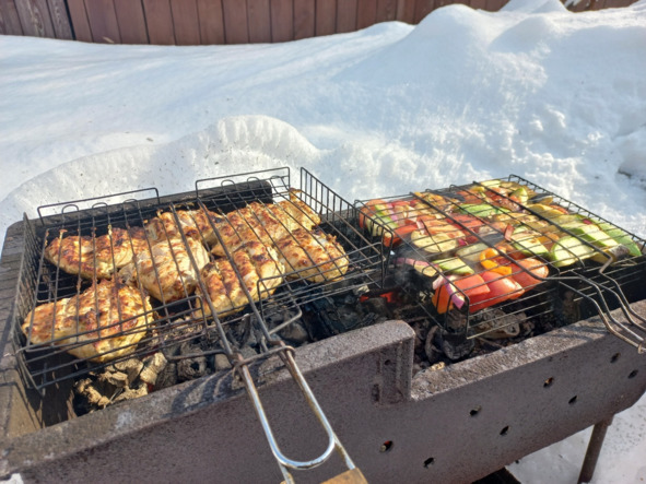 С первыми шашлыками.