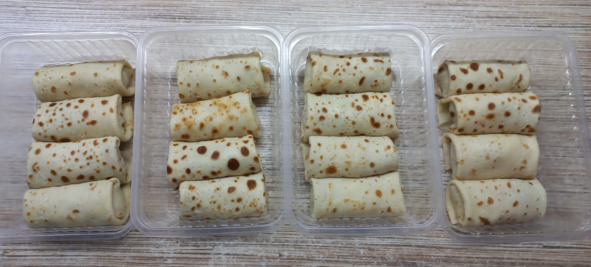 Изящным образом блинчики превращаются в элегантные рулетики…