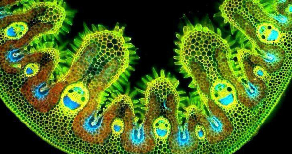 Срезы некоторых видов травы под микроскопом выглядят как желтые веселые смайлики.