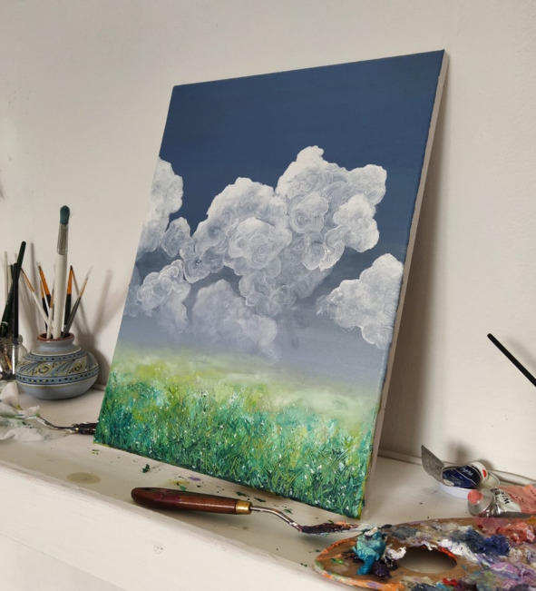 Одним словом, не знаю. По причине того, что мои картины не обеспечивают моё существование и практически не вызывают отклика у людей, я то и дело опускаю руки и теряю веру в то, что это вообще мое дело. Думаю, что занимаюсь по большей части самообманом и никакая я не художница.