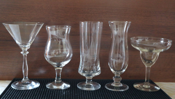 Слева направо: бокал для мартини, сауэр, хайбол, харрикейн, бокал «Маргарита»