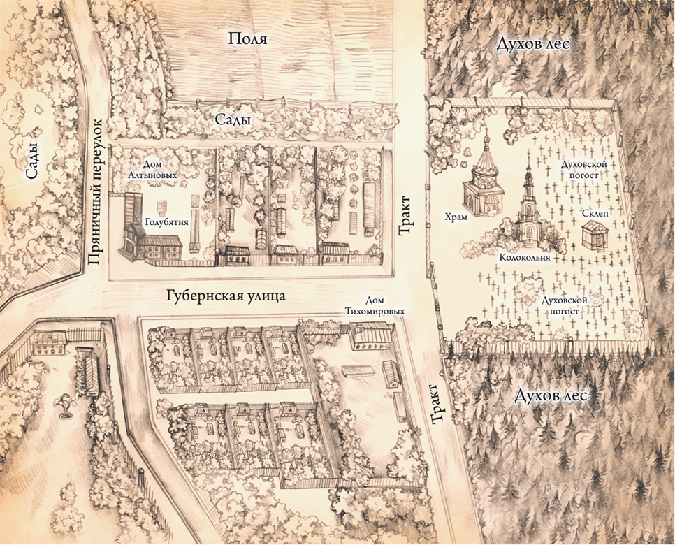 Митрофан Кузьмич завздыхал, закручинился, когда подумал про сынка. Вот ведь напасть какая! Вся надежда была теперь только на племянника Валерьяна: умного, ухватистого, расторопного. Тот, конечно, летами был постарше Иванушки – ему шёл уже двадцать шестой год. Но Митрофан Кузьмич имел основания полагать, что сын его и к пятидесяти годам не наберётся такого разуму, каким Валерьян обладал уже сейчас. И всё же – всё же, до того, как принять окончательное решение, купец Алтынов хотел наведаться на Духовской погост: помолиться в фамильном склепе. Ну, и в сам храм зайти, конечно же. Попросить у Господа наущения в нелёгком деле, которое Митрофану Кузьмичу предстояло.