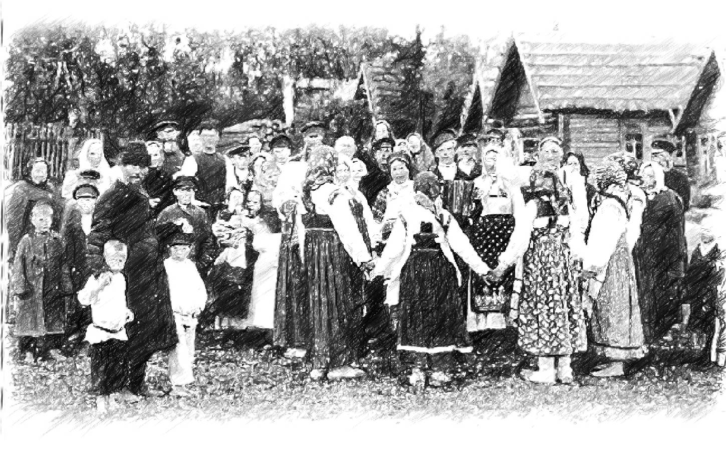 Устинья уже расцвела. Не удержать её было, часто бегала на вечёрки. Одни ботинки были в семье, схватит их, и быстрее бежит «танчить» то в Сотничи, то в Сметаничи, то в Куритичи. Стала дерзкой, непослушной. Никита только вздыхал: «Не моё дитя, не могу ею командовать». Весёлая, бойкая, голубоглазая, с русой косой и греческим профилем Устинья нравилась многим парням. Но, говоря современным языком, дружила с Ефимом. Ефим ходил вокруг Никиты и плачущим голосом молил: «Не отдавайте не за кого Устыну». За окном темень непроглядная. Декабрь – самые короткие дни в году. Никита приладил посреди хаты каганец с лучиной и плёл лапти. Красноречье Ефима не задело Никиту, он был сосредоточен на деле. Устына слезла с печи и жалобным, полным сочувствия и сострадания голосом заговорила: «Нет, нет, Ефимко, не пойду за Петра, только за тебя». Бедный Ефим надеялся. Бедный не только от недостатка любви и несбывшихся желаний, но и по крестьянским меркам: не было у него ни коровы, ни крепкого хозяйства, только обвалившаяся на углу (подпёртая кольями) хата, да мать с отцом. Через несколько дней забежала на хутор знакомая баба, поговорить с Анной, Никитой, посмотрела на Устыну. (Это тётка-скалля). Анна и Никита только плечами пожали. Как нынче, при советской власти, отдавать дочь замуж? Но между собой поговорили и Устыне рассказали о мужике из Куритичей. Звали его Пётр. Женат был. Только его молодая жена, ещё будучи девушкой, обещала ждать из Красной Армии своего друга. Но её выдали замуж за Петра. Как только в деревню вернулся красноармеец, молодая жена тут же сбежала к нему. А служивый не отказался от своей первой любви. Пётр остался брошенным мужем, но состоятельным женихом с коровой, свиньёй, курами и домом. Пётр был не просто лучшим столяром в округе, но и мастером с фантазией. Его дом нельзя было назвать хатой. Это был дом с высоким резным крыльцом на зависть всей деревне. «Большой рукодельник, мастер на все руки», – уважительно о нём отзывались односельчане. В один из дней, когда зимнее солнце уже повернулось к лету, на хуторе у селища Никиты остановился возок: полозья загнуты, а над конём дуга с бубенчиками. Устыну уговаривать не пришлось собралась в мгновение ока, и шасть в возок. Только её и видели. Пётр повёз Устыну в сельсовет расписываться. На Коляды сыграли свадьбу. Мать Анна упорно занавешивала маленькие окошки, чтобы никто из незваных гостей, отставных «женихов», не украл Устыну или не побили окна.