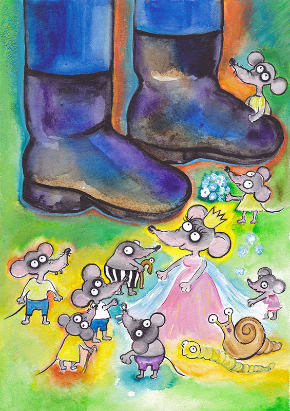 Добряк Великан хотел было уже идти дальше, но заметил на тропинке брошенную кошкой раненую мышку-полёвку. «Ах ты, бедняжка!» – сказал Сан-Саныч. Бережно поднял мышку, отнёс на маленькую лужайку. Там положил её на кочку и согрел своим дыханием. А так как Великан Сан-Саныч-то наш на самом деле был волшебником и дыхание у него, соответственно, тоже было волшебное, то мышка ожила. Пропищала: «Спасибо большое». И исчезла в зарослях высокой сочной травы. Великан же отправился дальше, ведь у него впереди было так много дел!