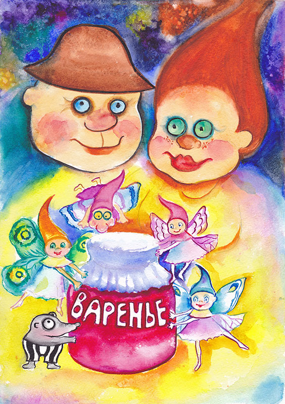 Вечером в лесу, на Цветочной поляне, был праздник. Феи напекли великолепных фруктовых пирогов, наварили сладко-пресладкого, вкусно-превкусного варенья. И угощали этими вкусностями всех желающих. Вокруг сверкала разноцветная радуга, танцевали бабочки и мотыльки, играли на скрипках кузнечики. Ох и наелись все до отвала! Ох и натанцевались до упаду! А потом самую большую бочку чудного вишнёвого варенья тысячи фей принесли к необычному дому великанов на окраине деревни. Великан Сан-Саныч с женой Великаншей холодными зимними вечерами долго потом пили чай с вареньем. Рассматривали фотографии и вспоминали лето.