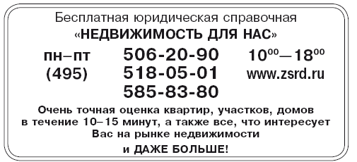 Видя сомнение клиента, девушка при нем набрала номер хозяйки той самой квартиры и передала трубку А. Нина Павловна – так звали жешщщу – предложила ему подъехать к семи часам вечера, предварительно позвонив. Решение жилищной проблемы казалось настолько близким, что А. с легким сердцем выложил деньги за бумажку с телефоном. Но ни в этот день, ни на второй он так и не смог дозвониться до мифической Нины Павловны: трубку никто не снимал.