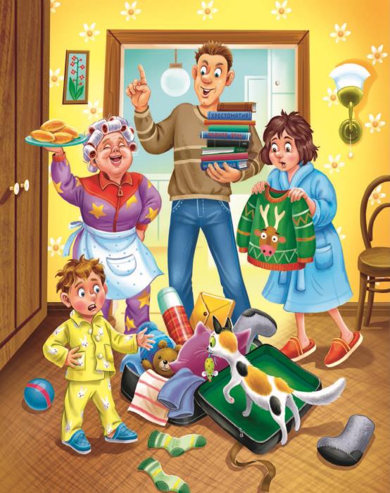 Анна Ильинична побежала на кухню, а родители притащили большой чемодан. Мама положила в него шарф, шапку и шерстяной свитер. Папа – стопку учебников.