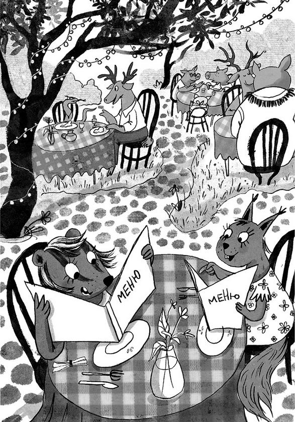 Им повезло. Заглянув в просвет между тесно сплетёнными деревьями и кустарниками, подруги увидели, как пара цапель, рассчитавшись, поспешно покидает зал. Через минуту вежливый до приторности хостес выхухоль проводил их к освободившемуся столику. Приятельницы так устали и проголодались, что сразу кинулись изучать затейливое меню, даже не осмотревшись по сторонам.