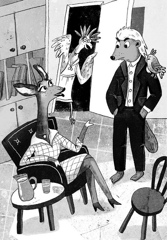 Птица-секретарь Лезеди в периоды полнолуния спала плохо. А в этот раз из-за того, что муж отправился в командировку, ей спалось ещё хуже. Она долго лежала одна в огромном, свитом в кронах акаций гнезде, чутко прислушиваясь к ночным звукам. Наконец выпила сонный порошок и провалилась в беспокойную полудрёму.