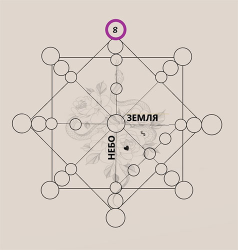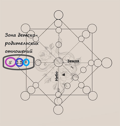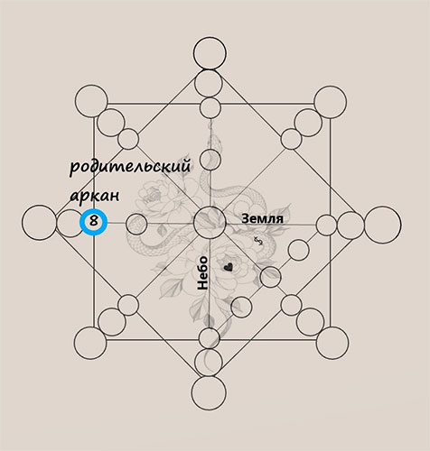 Третья энергия в этой зоне (8) называется «родительский аркан». Показывает, как ребенок воспринимает своего родителя. Образ родителя для своего ребенка, ошибки в отношениях с родителями.