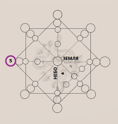 Эта зона отвечает за детско-родительские отношения. Первая энергия в данном канале является числом дня рождения (в примере 5). Эта энергия показывает, для чего пришел ребенок к своим родителям. Ставит задачи перед родителями, проверяя их готовность растить ребенка. Мы все являемся учителями и учениками друг для друга.