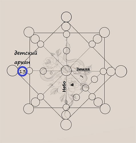 Для того чтобы получить энергию детского аркана, необходимо сложить энергию родительского аркана и число рождения (портрет личности) – 8+5=13.