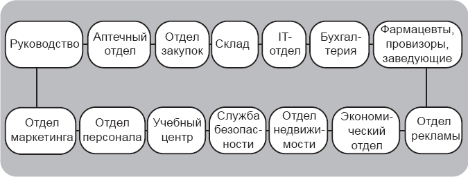 Любую организацию можно представить как совокупность квадратов. Квадраты – это отделы организации и их функции.