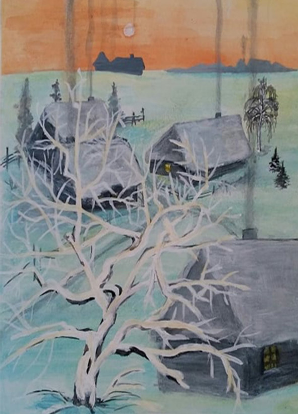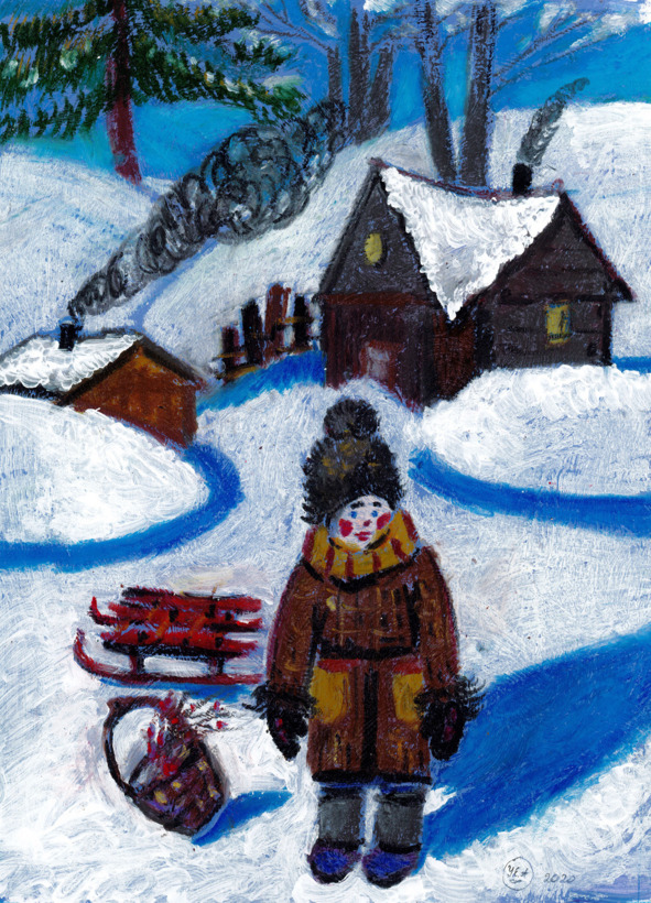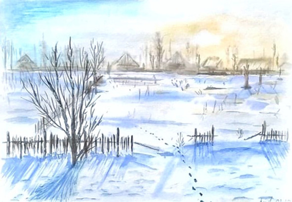 Ах, зима-проказницаТакое вытворяет:Будто вышивальщица,Землю украшает.И к тому, кто помнитОбраз ее сильный,Волшебством заходит,Блеском на картины.Будем любоваться,Может, даже с грустьюИ душой вживаться —Сразу не отпустит.Утро начинаетсяКаждый день с рассвета,Небо озаряетсяЭтим добрым светом.И плывут узорыВ розовом и синем,Радуют просторыМатушки-России.Хочется по небу,По цветным дорожкамРадостно побегатьИ вздремнуть немножко.Утро на картинеДля меня, как средство:Настроенье дивноеОтправляет в детство.«Вот моя деревня,Вот мой дом родной», —Будто бы из сказки,Будто не со мной.Как-то всё в тумане,Через призму лет.Просыпаюсь – мамеГоворю: «Привет!»Забияка -ПетькаЗакричал вовсю.Приглашает встретитьВместе с ним зарю.Отвечают куры:«Куд-кудах-кудах».Поросёнок ХрюняВзвизгнул на задах.Ватным одеялом,Прикрываю нос.Дым висит упрямо.«Дочка, как спалось?Щас! Раскочегарю!Надо ж – намело!Угольку добавлю,Чуешь, как тепло?»В ящике поленья,Уголёк в ведре,Хочется вареньяИль батончик мне.Вот пыхтит перловка,От дровишек треск,Мамина сноровка,А в окошке блеск!На стекле картинки,Будто бы из манки.За окном снежинкиКружат спозаранку.В кружево губами,Пар я выдыхаю,Тёплыми рукамиКапли собираю.«Вот тебе горбушка,Есть варение, мёд,А ещё пампушки.Ой, ладошки – лёд!»Обнимает мамаИ чуть-чуть ворчит.Ну а дым упрямоВ горлышке горчит.Васька спрятал носВ половик у печки.«Как же там Барбос?», —Ёкнуло сердечко.Мы берём лопаты:Мне по пояс снега —И гребём от хаты.Для меня потеха,А Барбос виляетНам хвостом в ответ,В снег потом ныряет —Вот он был и нет.Будто манной кашей,Двор засыпан наш.И собака наша,Словно снежный барс!Серый дым клубится,Из соседних труб.Аромат струится:Где-то хлеб пекут.Дерева прогнулисьПод пушистой ватой,Дома окунулись,Спрятались под шляпой.Утро, будто в сказке.Щеки запылали,Вот стоят салазки,Целый год снег ждали!Детство мое милоеГде-то затерялось.В книгах и картинах,Видимо, осталось.Сквозь узоры вижуДетские глаза.И сейчас такие же,Только в них слеза.Ксения Каракашьян