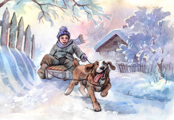 – Я с горки пойду кататься и рябины нарву, – сказал он бабке, наскоро позавтракал, взял санки, корзинку и побежал к мальчишкам.