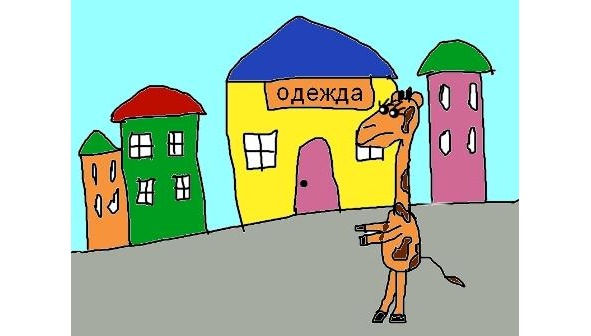 Жираф в магазине «Одежда»Пиджак выбирал для прогулок,Но рухнула разом надежда,Остался опять без покупок.В чем дело? Пиджак не сходился.Был блеклым – расцветки не той,Тянул и в плечах не садился– Ни с чем и вернулся домой.