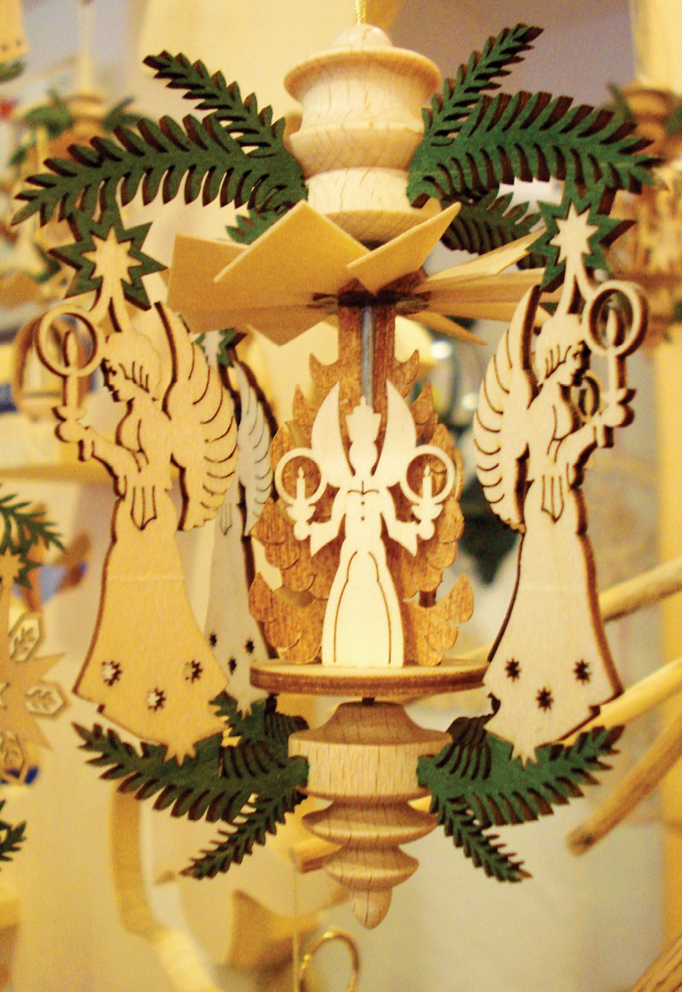 Фрагмент рождественского украшения из дерева, Эрцгебирге. Специализированный магазин елочных украшений, Берлин, Германия. Февраль 2010. Фото автора